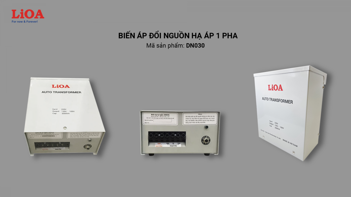Chính vì vậy, để có thể sử dụng được các thiết bị gia dụng nội địa này, bạn phải nhờ đến sự hỗ trợ từ máy biến áp LiOA. Trong phân khúc các sản phẩm biến áp đa dạng của thương hiệu LiOA, chúng ta sẽ cùng tìm hiểu về công năng và các ưu điểm nổi bật của một sản phẩm biến áp tự ngẫu LiOA còn gọi là biến áp LiOA đổi nguồn hạ áp 1 pha, với các mã sản phẩm: DN002, DN004, … DN030.