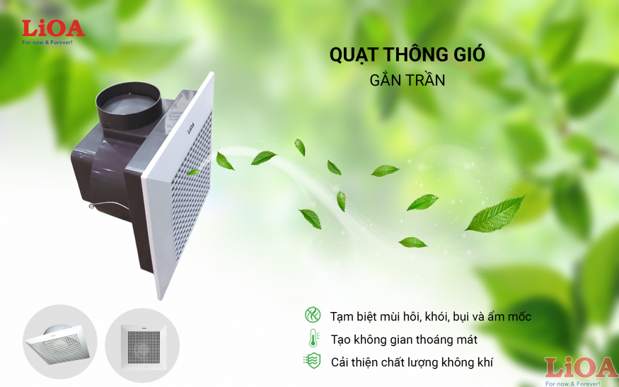 + Bên cạnh đặc tính an toàn, quạt thông gió gắn trần LiOA còn được nhiều người tiêu dùng yêu thích sử dụng vì vận hành êm ái với độ ồn <55 db. Quạt có kiểu động cơ 4 cực, có tụ hút không khí một chiều từ trong ra ngoài, êm nhẹ nên hoàn toàn có thể bố trí thoải mái ở các vị trí trong phòng mà không ngại tiếng ồn khi quạt hoạt động như những loại quạt thông gió khác.