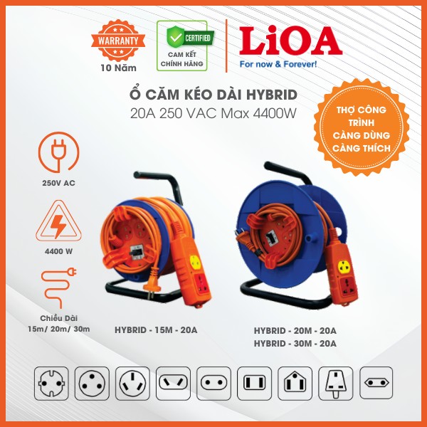 cắm LiOA công suất lớn được thiết kế để hỗ trợ các thiết bị có yêu cầu tiêu thụ điện năng cao, thích hợp với các máy móc trong nhà xưởng và các thiết bị điện lớn tại công trường.