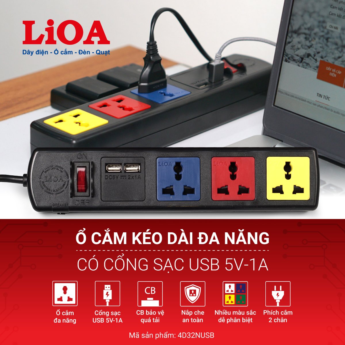 [•] ƯU ĐIỂM VƯỢT TRỘI Ổ CẮM SẠC USB LIOA 4D32NUSB: