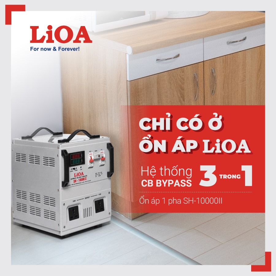Ổn áp LiOA 10kva là ổn áp LiOA bán chạy nhất hiện nay. Với nhiều ưu điểm vượt trội ổn áp 10KVA phù hợp hầu hết các hộ gia đình có mức tiêu thụ điện công suất lớn. Tiền thân là ổn áp LiOA SH-10KVA tính năng ổn định, mạnh mẽ thì nay ổn áp LiOA thế hệ mới 100% dây đồng lại đảm báo cho các thiết bị của bạn hoạt động trơn tru hơn và tiết kiệm điện hơn có một số đặt điểm sau để các bạn phân biệt so với phiên bản cũ: