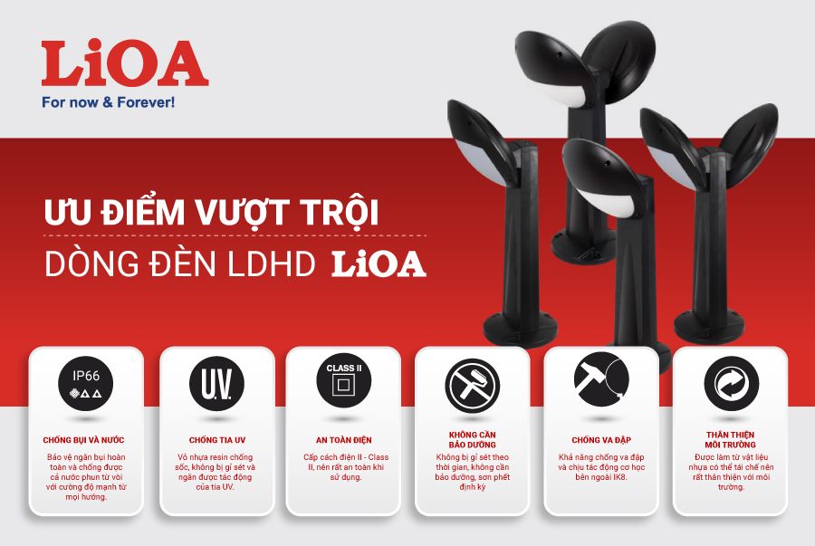 LiOA cho công trình của mình thì bạn đừng nên bỏ qua dòng đèn LDHD của LiOA nhé. Đèn có thiết kế hiện đại và được làm bằng loại nhự resin đặc biệt nên có được những tính năng và nhiều ưu điểm vượt trội: