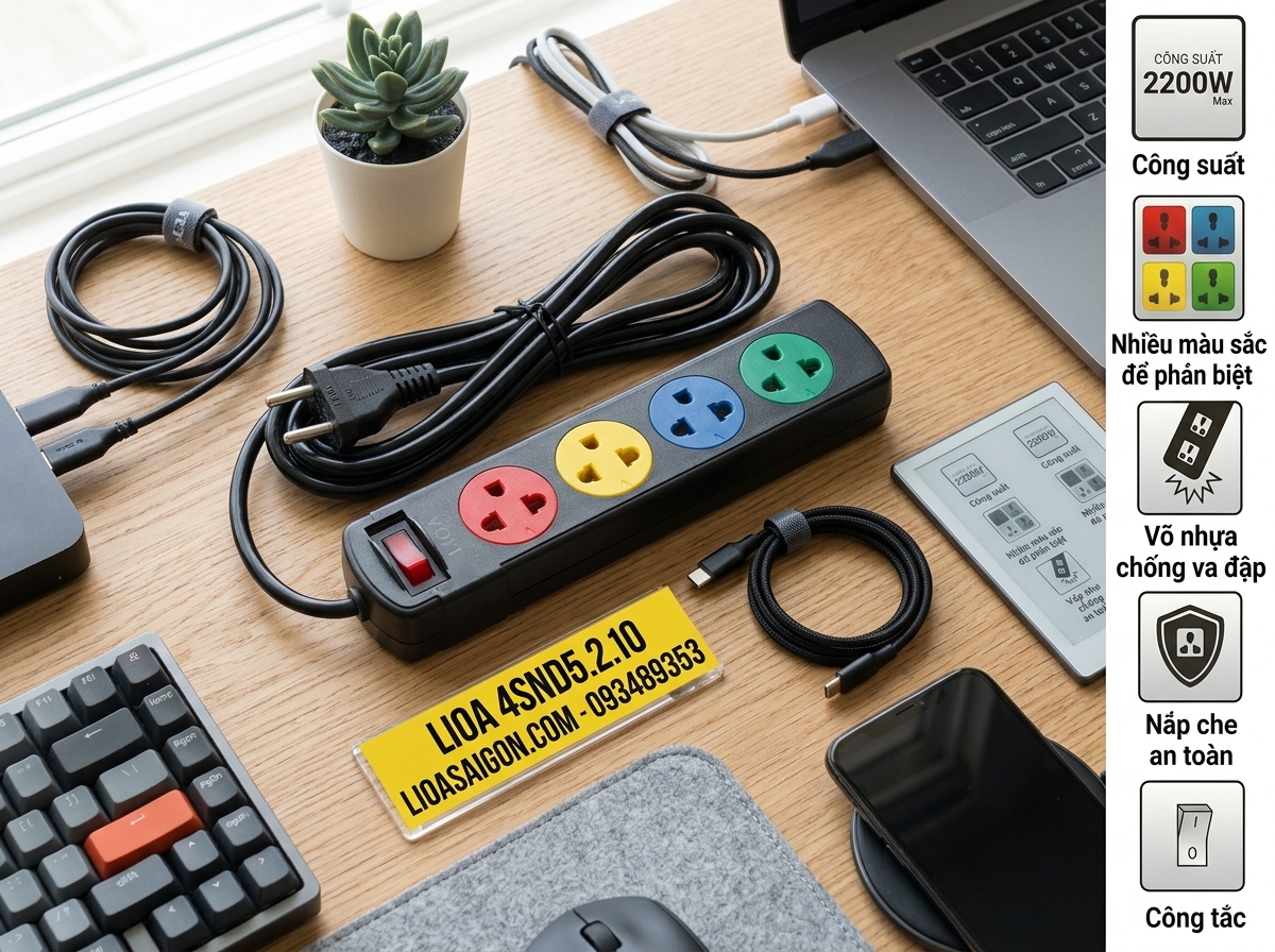 Trong thực tế sử dụng tại các gia đình, ổ cắm tường thường bị che khuất sau ghế sofa hoặc nằm ở những góc khuất. Khi cần kéo điện ra giữa phòng khách để cắm nồi lẩu, máy hút bụi hay bàn là, sợi dây 3 mét đôi khi vẫn là chưa đủ. Đó là lúc mã LiOA 4SND5.2.10 phát huy sức mạnh với sợi dây dài 5 mét.