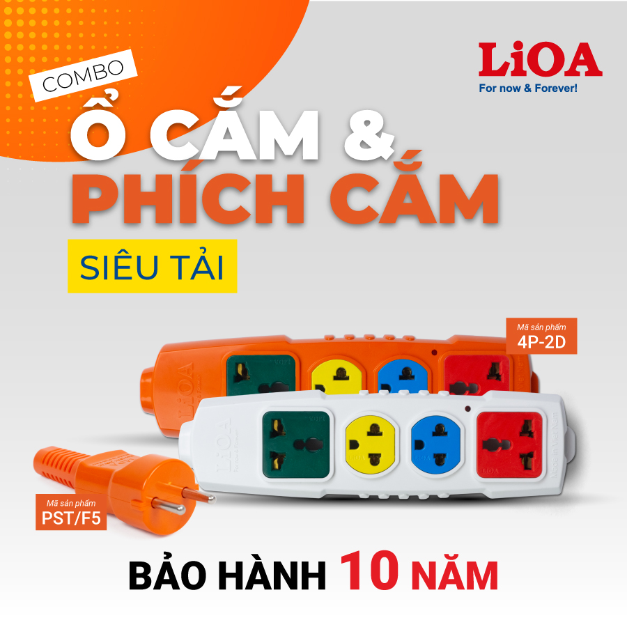 Ổ cắm Lioa nổi tiếng với độ bền cao, lò xo tiếp xúc chặt, sử dụng nhựa chống cháy, và thường tích hợp bảo vệ quá tải (Aptomat) để tự ngắt khi dùng quá công suất cho phép.