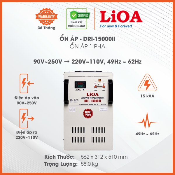 Nếu các bạn đang tìm kiếm giải pháp bảo vệ thiết bị điện trong gia đình hoặc văn phòng, ổn áp LiOA DRI-15000II 15kVA là lựa chọn lý tưởng. Không chỉ cung cấp nguồn điện ổn định, sản phẩm còn bảo vệ các thiết bị của bạn khỏi các sự cố điện áp, giúp tiết kiệm điện và kéo dài tuổi thọ thiết bị.