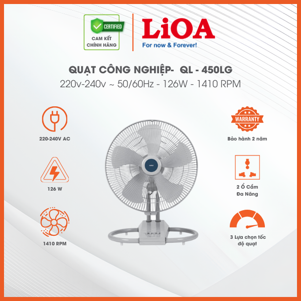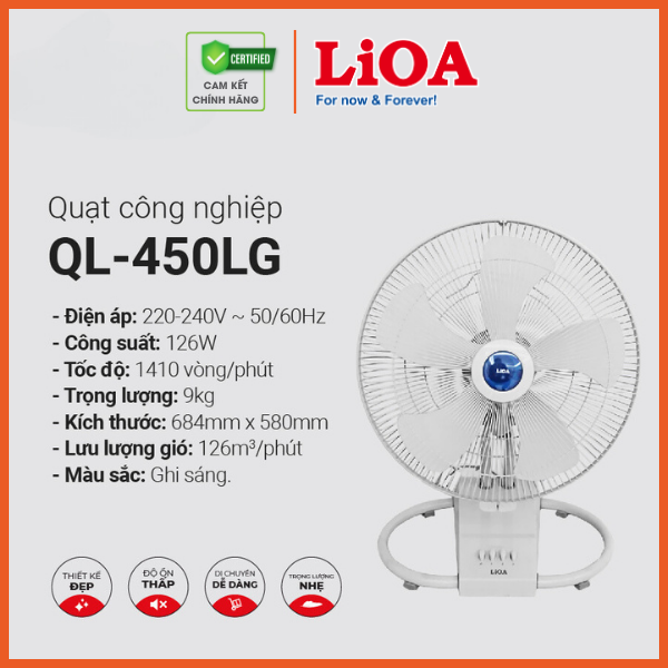 Rất bền bỉ. Quạt LiOA QL-450LG được làm từ các chất liệu cao cấp, đảm bảo hoạt động ổn định và lâu dài.