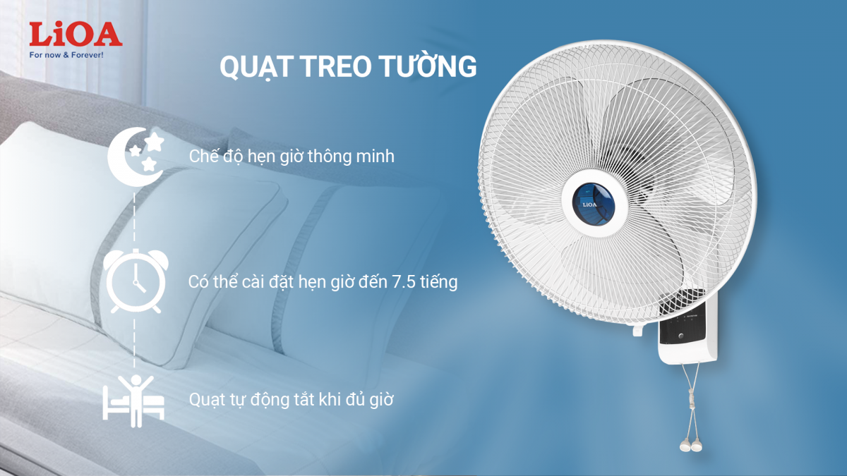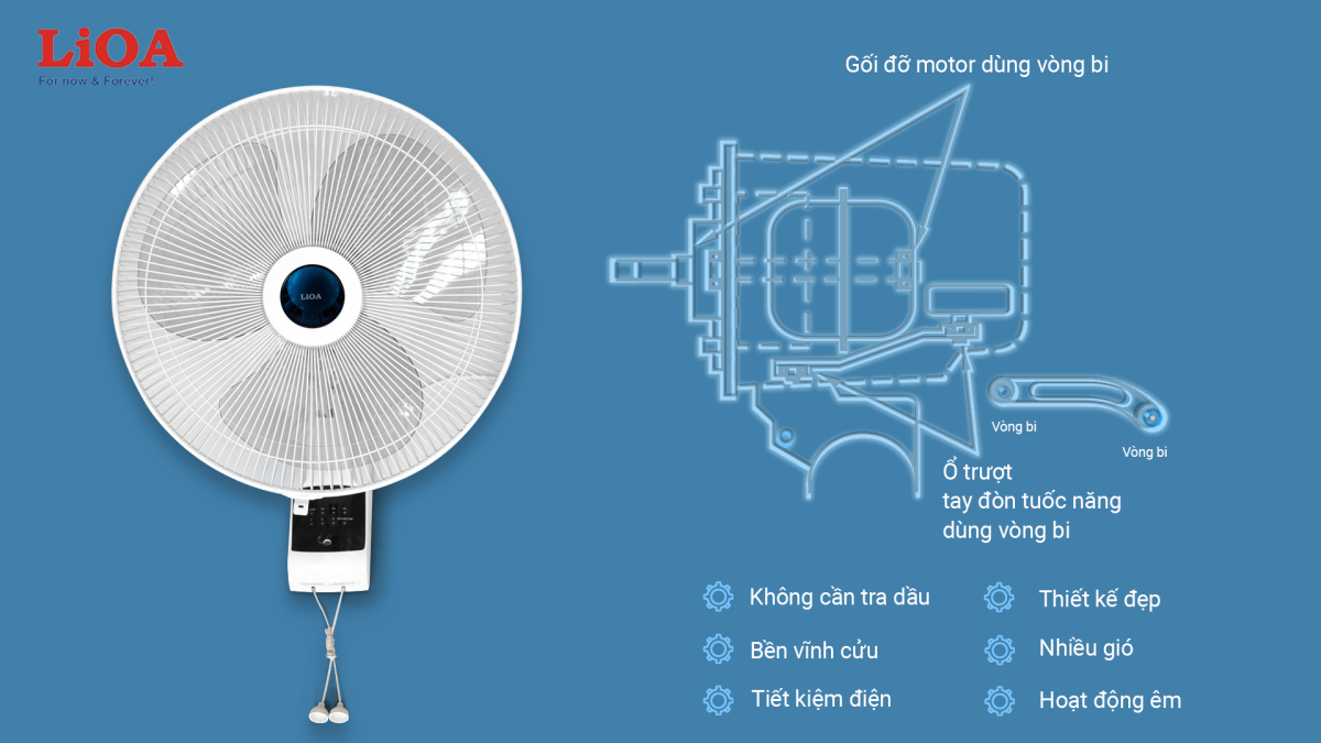 Quạt treo tường LiOA vận hành êm ái, tiết kiệm điện, bền bỉ mang lại nguồn gió mát dịu cùng nhiều lợi ích khác cho người dùng. Khi không gian sàn hạn hẹp hoặc nhu cầu làm mát ở khu vực cao hơn vị trí ngồi thông thường thì quạt treo tường là một trong sản phẩm bạn cần có cho căn phòng mát dịu với gió thổi êm.