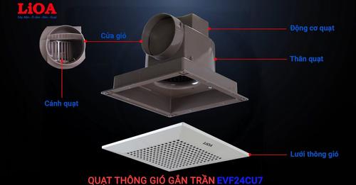 Quạt hút âm trần LiOA EVF24CU7 loại có ống thổi ngang do LiOA sản xuất với nhiều ưu điểm vượt trội: